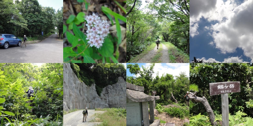 予定では、尾根沿いの道を歩き、2座を通過し楽しく「剣ヶ岳」に着くはずでした。が、私たちが利用した「分県ガイド」は情報が古すぎた様です。