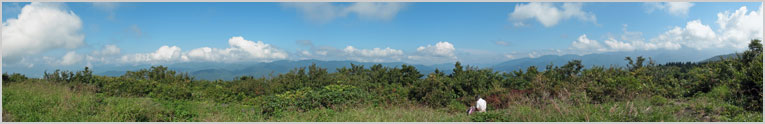 道の駅・九頭竜は殆ど貸し切り状態で、とても静かな夜でした。温度も快適で、睡眠時間も取りすぎた位です。良い天気でしたが、山は基本!雲の中・・。山頂は団体さんが占拠して、大声で会話してます。年配の人が多い様なので大声は仕方無いとしましょう。ただ、他の登山者が来ても、山頂の中央と展望ポイントを動く気配も無く、私たちは山頂からの展望も記念撮影もパスしました。山頂を過ぎると静かな山で、“ほっと”しました。いろんな場所のいろんな山に登らせてもらっているといろんな人に出会います。