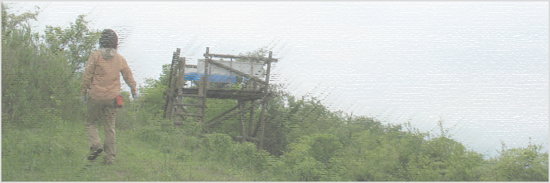 伊勢を抜けるまでは本降りだった雨も落ち着き、ガイドの通りに日中友好の森を目指して林道を走りますが、駐めるポイントを探している間に終点に到着してしまいました。対向車がいたら接待絶命の道幅なので、静かな山に感謝です。決して、車で入らないことをお勧めします。