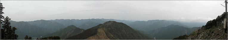ルートはとにかく、植林帯を登る登る。とにかく登る。よし庵さんが「あきた~っ」と言うほど淡々と登ります。それだけ、尾根にたどり着いた時の喜びは大きかったですが・・。 天気が崩れる直前で山並みも靄ってみえますが、降られなかったことを感謝しましょう。今日も楽しい山でした。