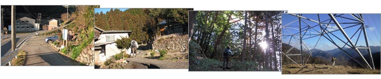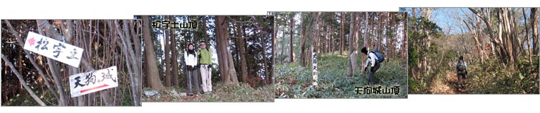 07:25 道の駅・むげ川発 → 08:00 登山口 (0:35)→ 08:57 鉄塔 (0:57)→ 09:18 天狗ヶ城山頂 (0:21)→ 09:39 松宇土山頂 (0:21)→ 11:03 登山口 (1:24)
