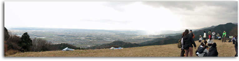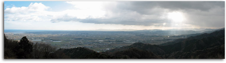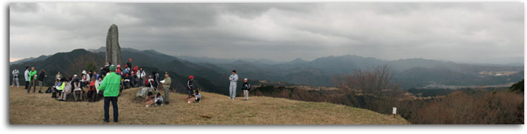 簡単な坂道も腰をかばいながらの情けない登山でしたが、展望の素晴らしいなかなかの低山でした。山頂では、子供達が城跡についての講義を受けてました。360度の展望が素晴らしい山です。海側は快晴ですが、山側は雨という不安定な天気です。「学能堂山」は雨かも知れません・・・。