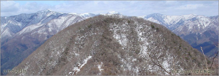本当は「外津汲山」までを予定してましたが、装備と寒さに不安有り!!で、撤収してきました。 いつもの通り「山は逃げない」と言うことで・・・。ただ、山頂で話をする事の出来た八代さんに「外津汲山」からの写真を提供していただきました。私たちの「外津汲山」は、春にカタクリとセットでの楽しみに取っておきます。