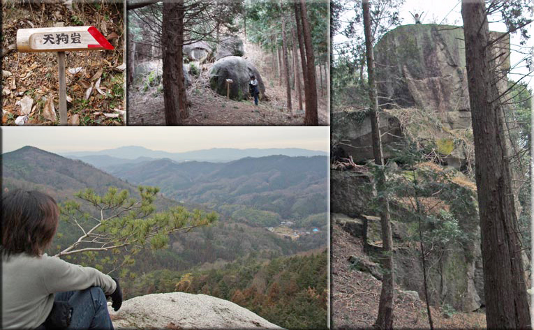 Holdenさんの情報で登ってきました。なんとも立派な岩に展望にびっくりです。 写真の岩の上のJunちゃんの大きさから、岩の大きさを推測してもらうとして・・・。金曜日の日に腰を痛めてしまって、大変な低山歩きとなりました。原因は、冬場の運動不足につきると思うのですが、下りになると更にきついのでした。明日からも寒いらしいですが、早く温かい季節にならないかな~っ天狗岩までのルートは整備され、道標もしっかりしてました。
