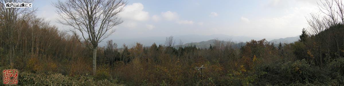 と、言うことで、今日はその点の確認のために来ました。早めに自宅を出たものの、豊田付近でしっかりと通勤渋滞に巻き込まれてしまいました。肝心の展望は、以前とは大違いです。「あれ~っ、違うな~っ!本当に同じ場所?」山頂に切断された木々が積んであるので、以前に周りに立っていた木々なのでしょう。登山道は短いですが、気持ちの良い道でした。早めの紅葉をたっぷりと楽しんできました。