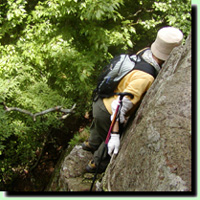 12時10分、まずは分岐を目指します。食事を済ませて歩き出しても、危険な道が続きます。山登りを趣味とする人に高所恐怖症の人はいないと思いますが、写真のような場所に立つと、動けなくなってしまうかもしれませんね。