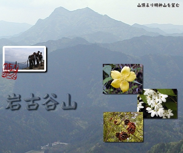 《割岩》をすぎるとすぐに山頂です。予想より短い時間で山頂に着いてしまいました。すばらしい展望です!私たちにも《明神山》と《平山明神山》の特徴のある山はすぐに解ります。遠くまで見える山並みが最高です。時間は早いですが、この展望を楽しみながら食事とします。