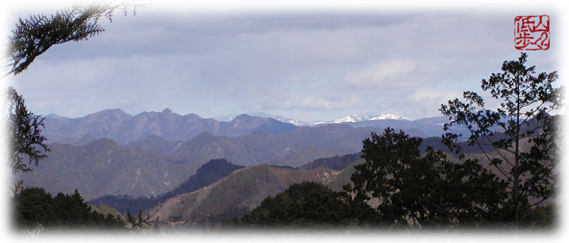 藪こぎかな?と思いましたが、それほどの藪もなく、いたって楽な道のりです。あまりに楽すぎて、遠路はるばる来たよし庵さんに申し訳ないくらいです。途中、わずかですが綺麗な山並みを望むこともできます。