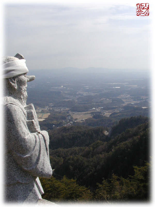13時29分 展望台到着 いやーっ、楽な道のりでした。展望も素晴らしい!展望台からの眺めを楽しんだ後は、さらに上を目指します。もっとも、私は2度目になるのですが…。先ほどの老夫婦は、食事の後のお茶を楽しんでいるのでしょうか?さっきと同じ場所でおしゃべりしています。天狗の祀られている場所まで行くと、また格別の展望です。