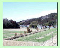 尾根道を下り始めると…すぐに林道に出てしまいました。整備された道がお好みでない方は、来たルートをそのまま戻る方が絶対に楽しいと思います。しかし、下山した先に見える集落(町の)の【風景】もまた、しみじみと良いものですね。