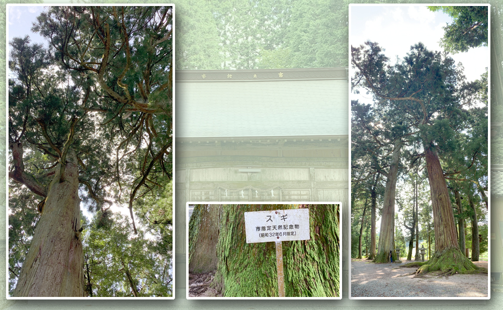 2020年8月23日 2025年4月8日 23 愛知県 / 24 樹木・巨木 白鳥神社の杉愛知県新城市作手白鳥宮下7本殿に向かって、左:幹周5.9m根囲10.0m樹高45m推定樹齢300年余り右:幹周7.15m根囲9.5m樹高48m、推定樹齢:500年余り